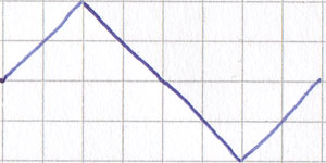 A triangle wave looks a bit like a sawtooth wave, only without the vertical lines. It slowly falls then slowly rises, making it look like a zigzag shape.